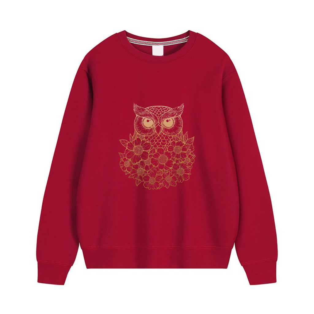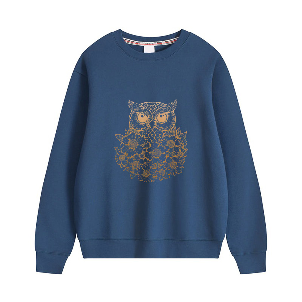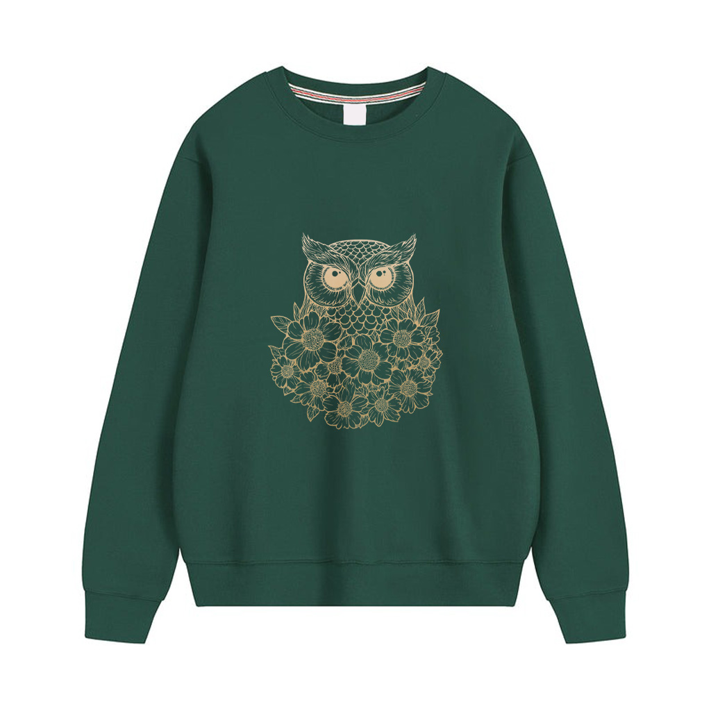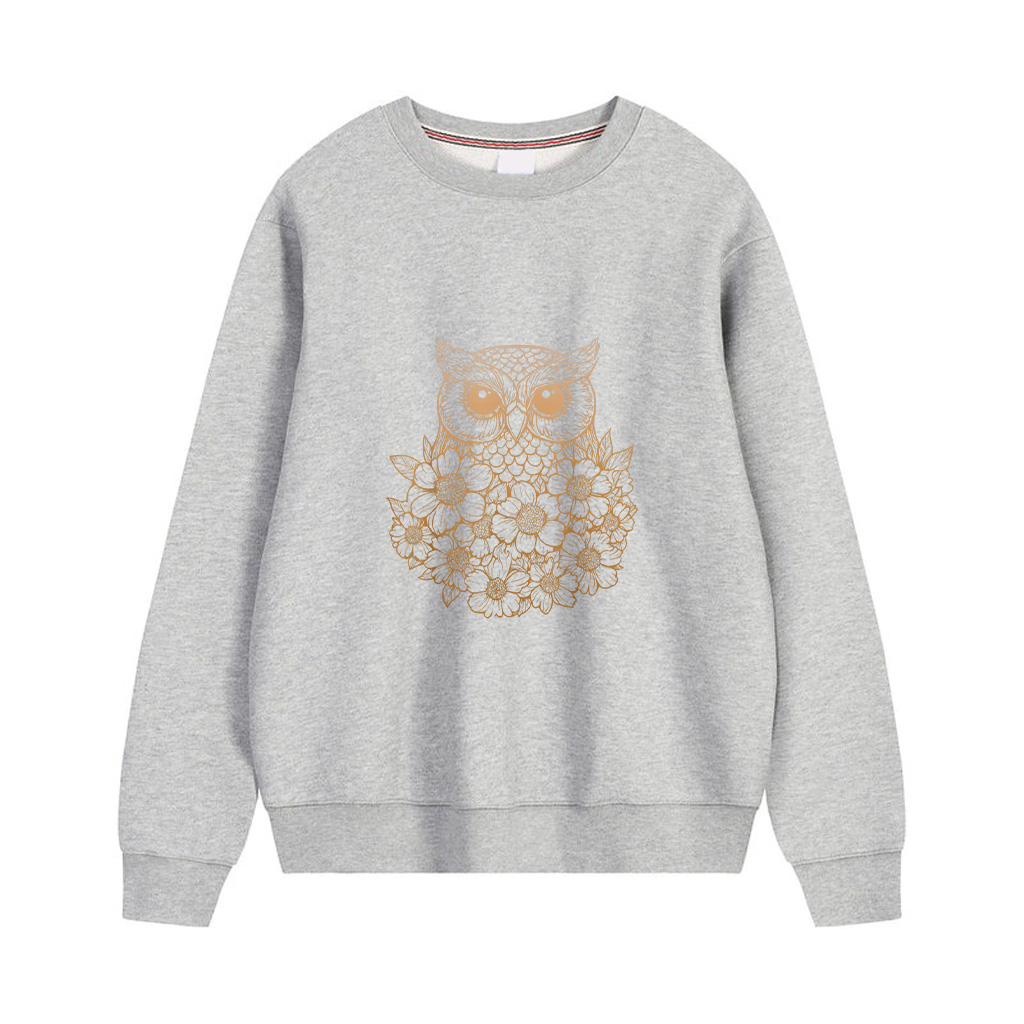 Minimalist Boho Floral Line Art Owl Illustration Gradient Sweatshirts